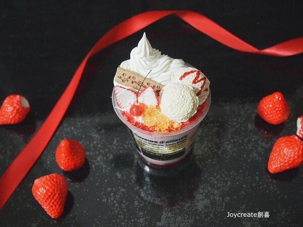 食品サンプル メニュースタンド イチゴ&ゼリーカップパフェ スイーツデコ 撮影小物!メモスタンド