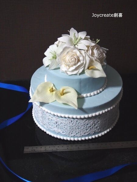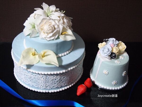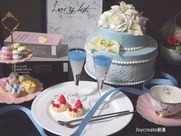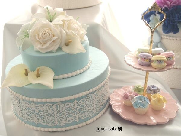 大きな2段のケーキは存在感バツグンで、ウェディングウエルカムスペースや二次会パーティ会場での豪華なディスプレイができます。