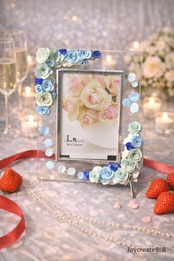 スイーツデコ ガラス シルバー フォトフレームブルーバラ
