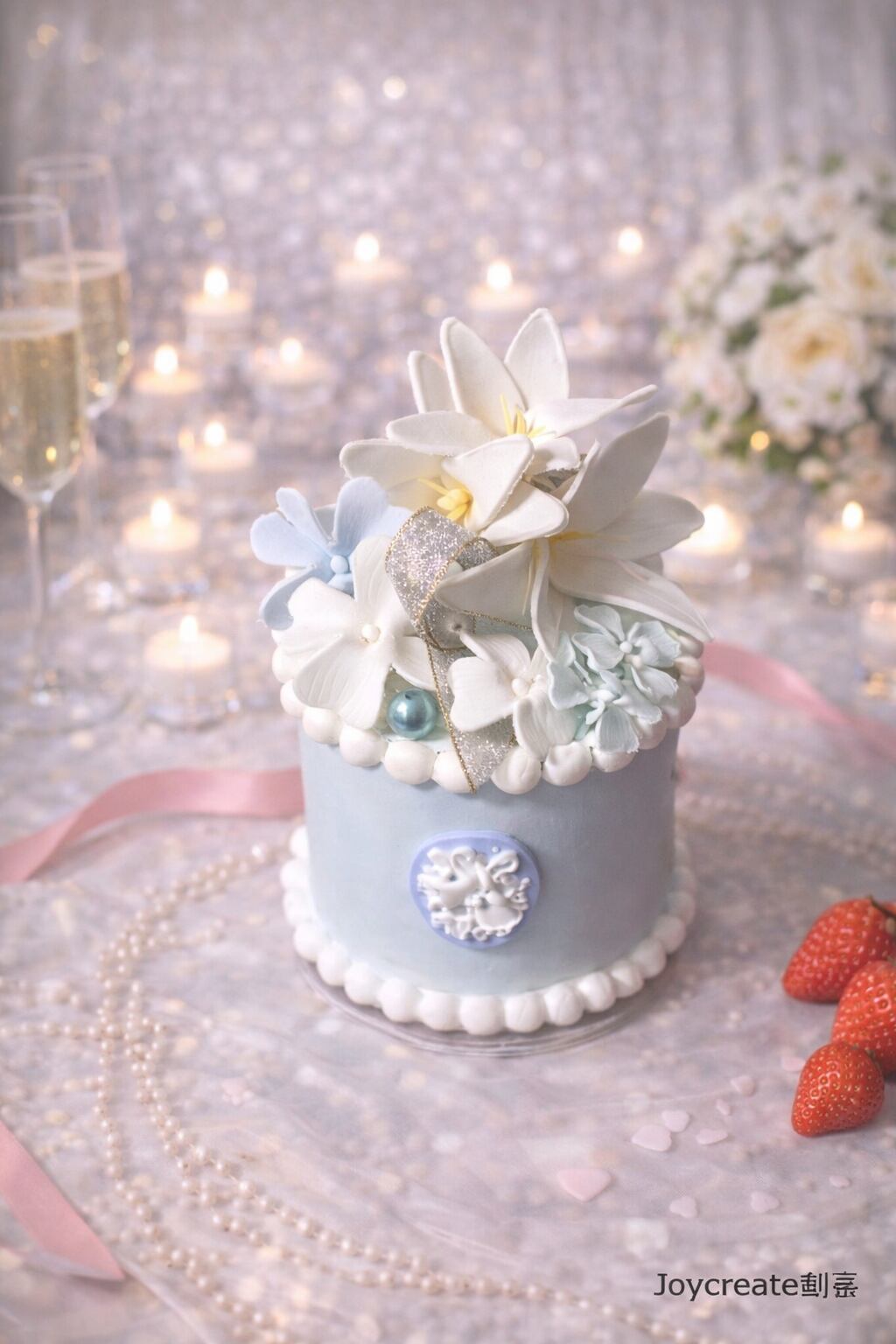 ブルーベースにホワイト系のお花をデコした小物入れです。