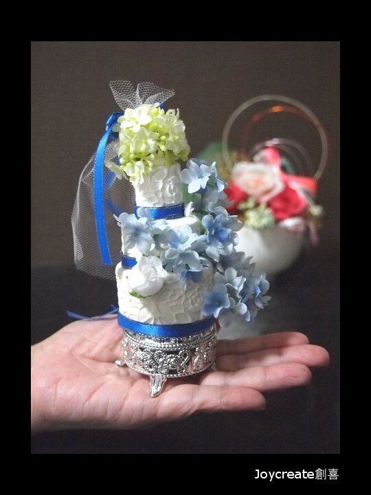ウエルカムグッズ リングピロー 食品サンプル 小サイズ ウェディングケーキ 小物入れ ブルー clay cake