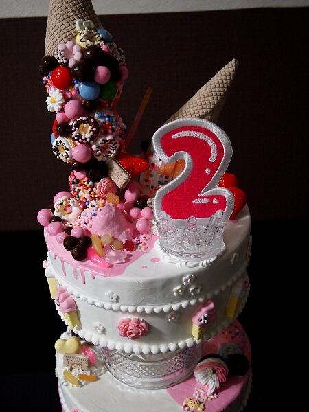 【J様オーダー品】食品サンプル バースデーケーキ2段 キッズタイプ2