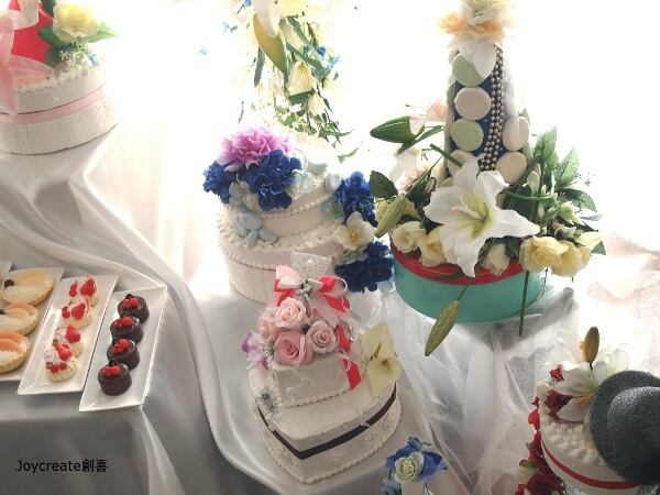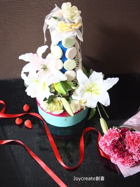 マカロンタワー上部と、サイドの造花は接着しておりませんので、