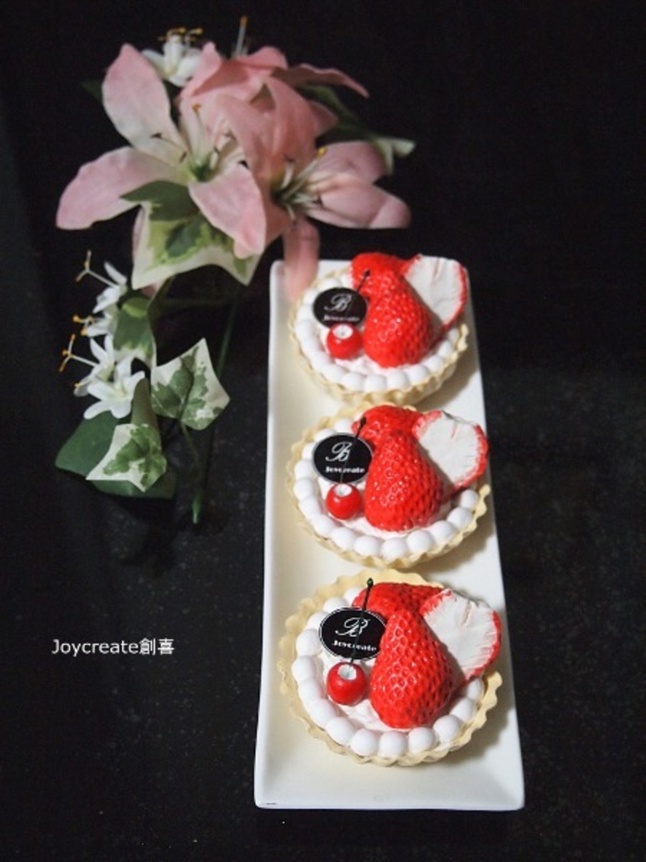 食品サンプル ディスプレイ いちご&さくらんぼ一口タルト3個セット 撮影小物にも!