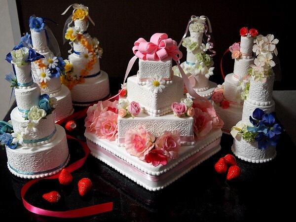 小さなウエルカムスペースやレセプションにウエルカムケーキとして可憐に、