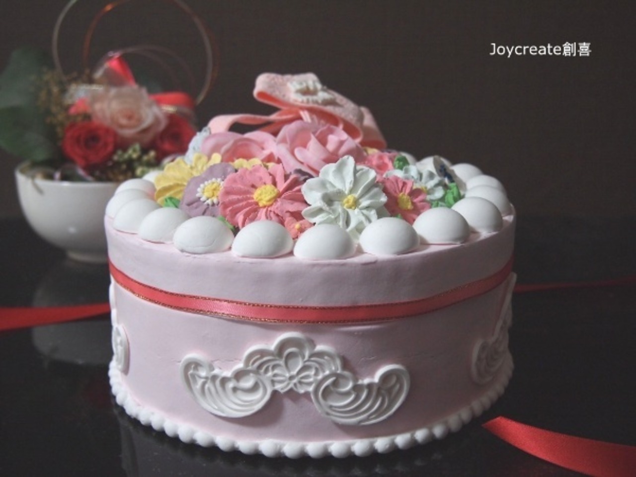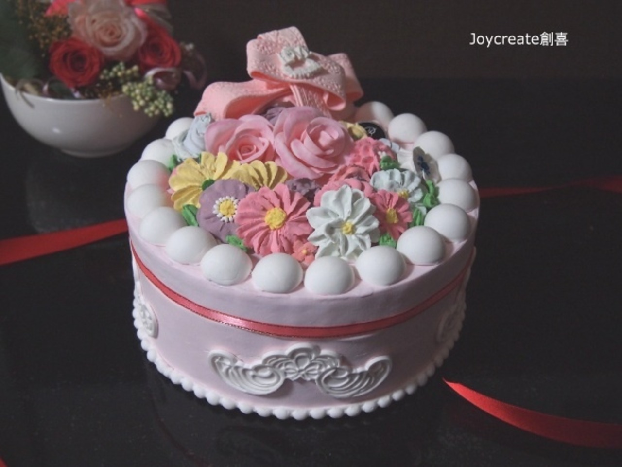 バラや淵の花びら飾りなどは「粘土」で絞り出しております。